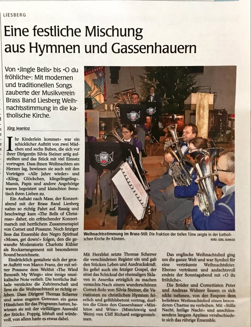 10. Januar 2019 Hymnen und Gassenhauer Das Wochenblatt vom 10. Januar 2019 berichtet über unser Weihnachtkonzert vom 23. Dezember 2018. tagPlaceholderTags: